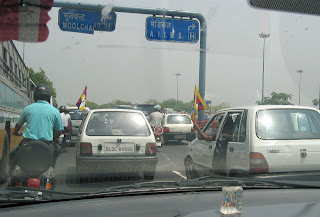 The Olympic torch came through India today. And being so close to Tibet, it was a very cool experience. A lot of people have a lot of views on China's occupation of Tibet, and India is no exception. I'm not sure if it was on the news in the US, but there was an "alternative" torch relay held by Tibetan exiles today. Yesterday I saw this on the commute to work.